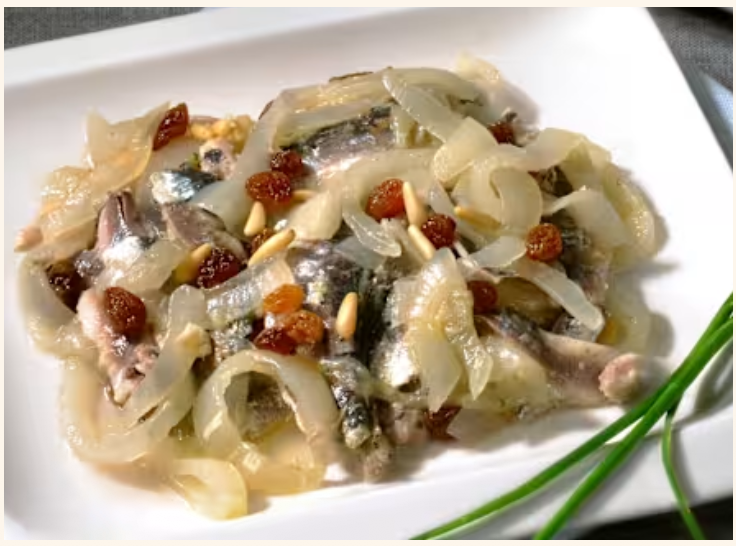 Fried sardines with a sweet-and- sour medley of slow-caramelized onions.